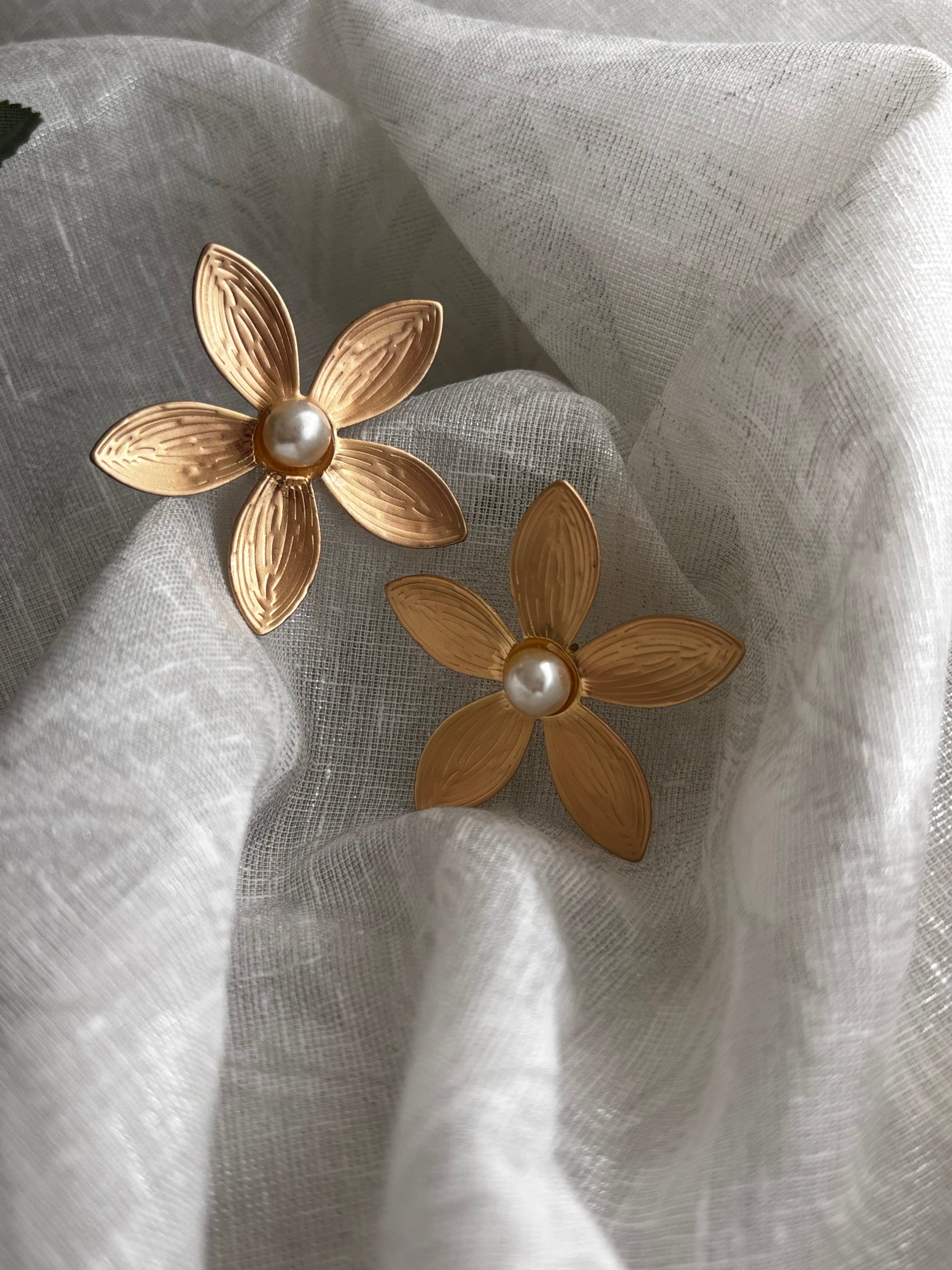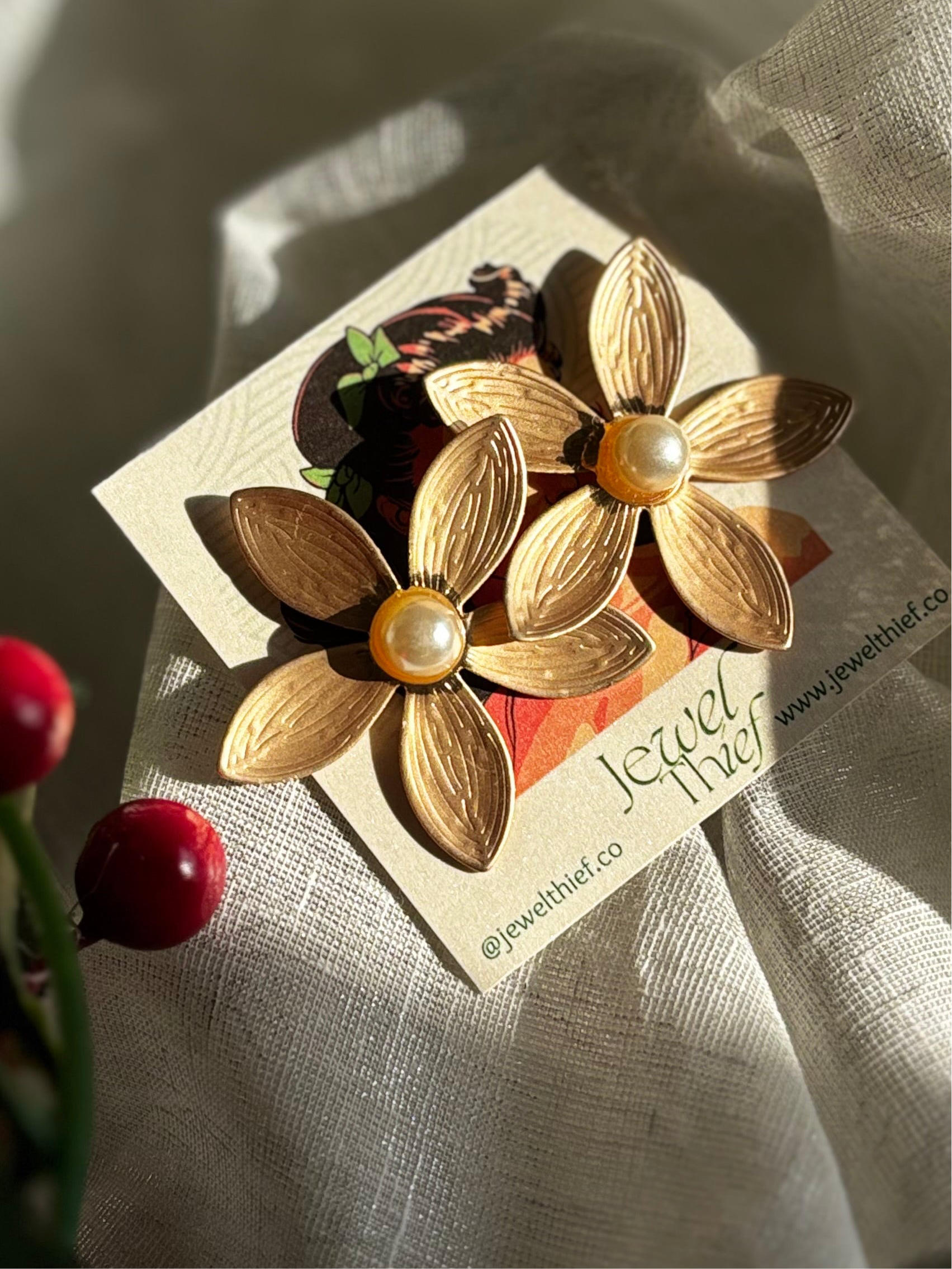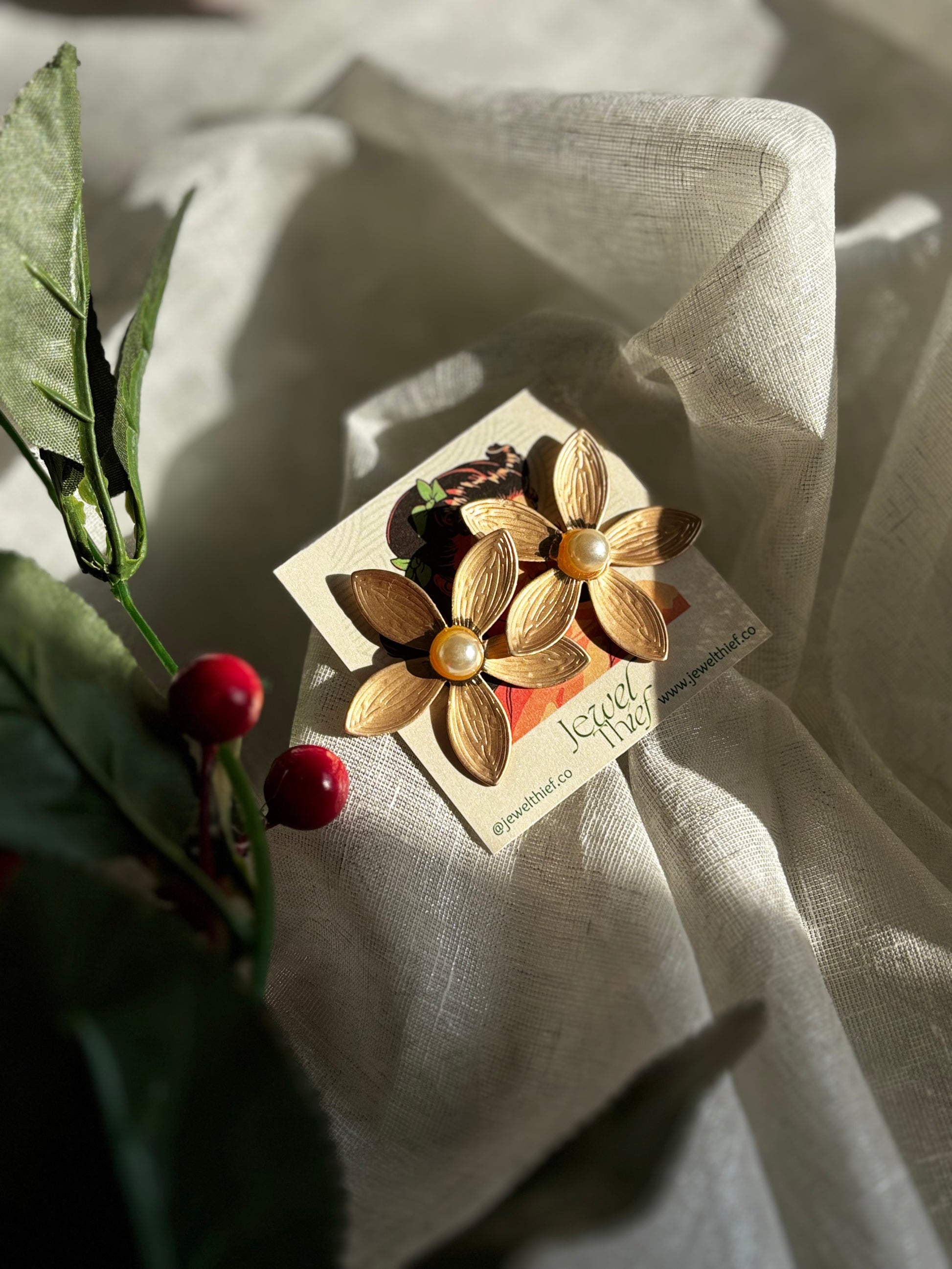 Lightweight everyday statement floral earring with a beautiful pearl at the centre