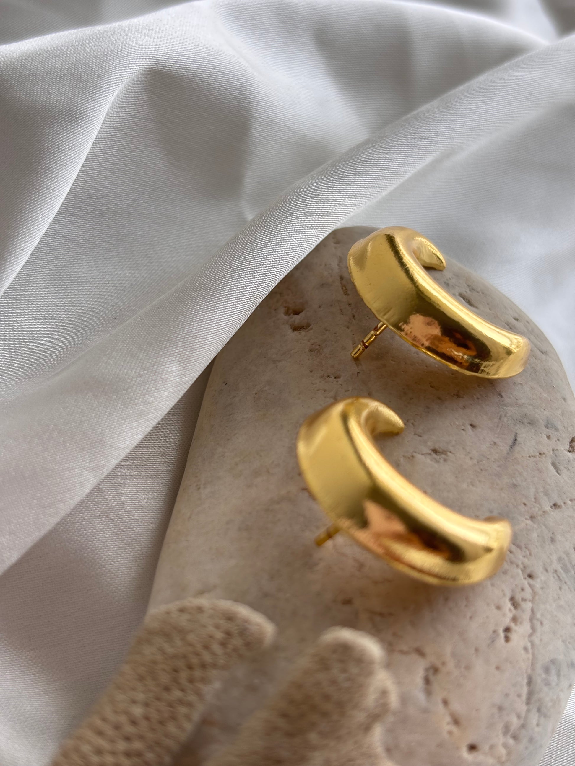 Add a touch of whimsy to your everyday look with our handmade Crescent Moon Studs. These chic and elegant earrings are crafted from tarnish-free brass, making them perfect for daily wear. Embrace your playful side with these versatile crescent moon shaped studs.
