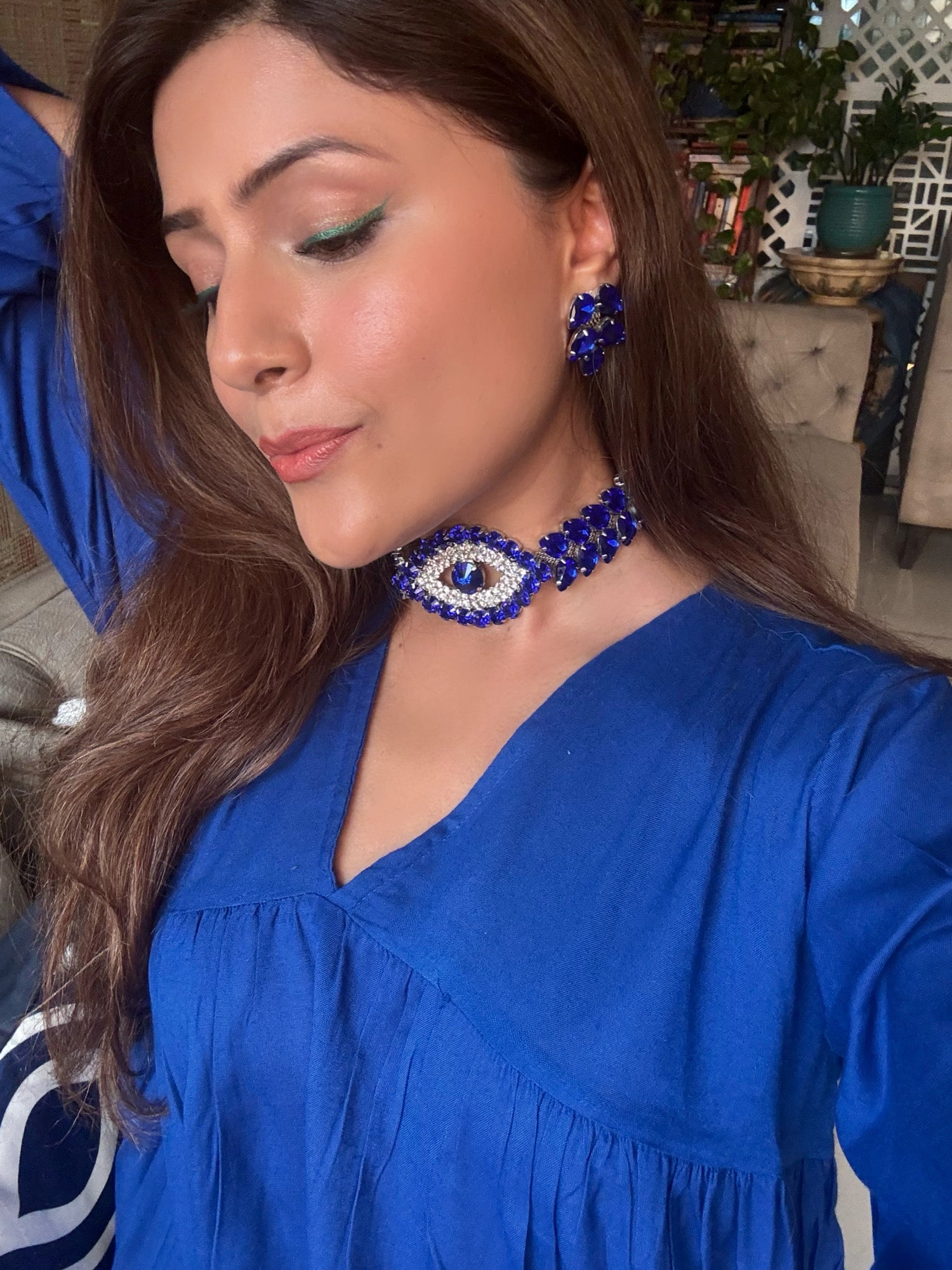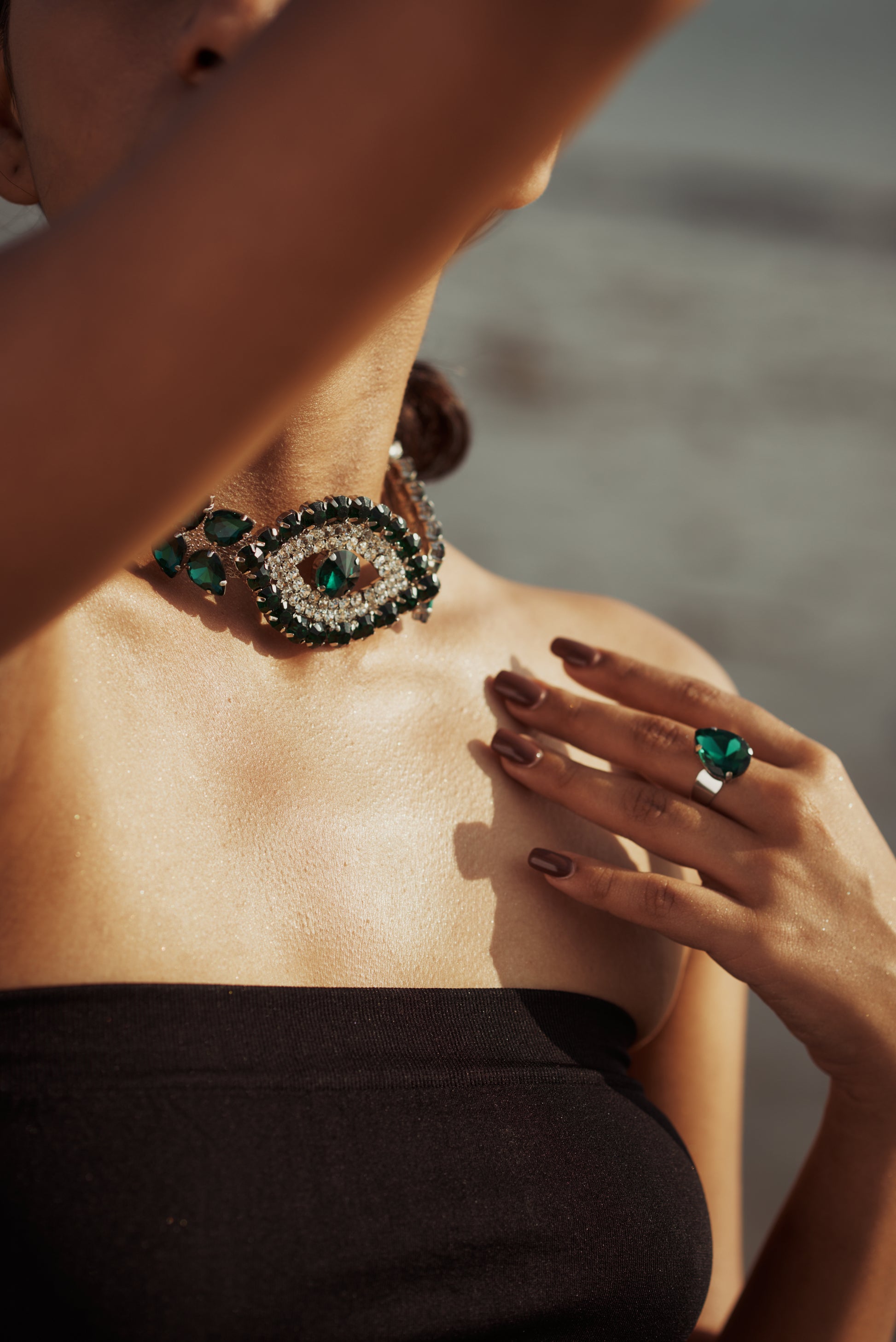 What more could a girl want? This statement choker will not only earn you a spot on the best dressed list, but it'll also ward off the evil eye and bring in the love! 💚