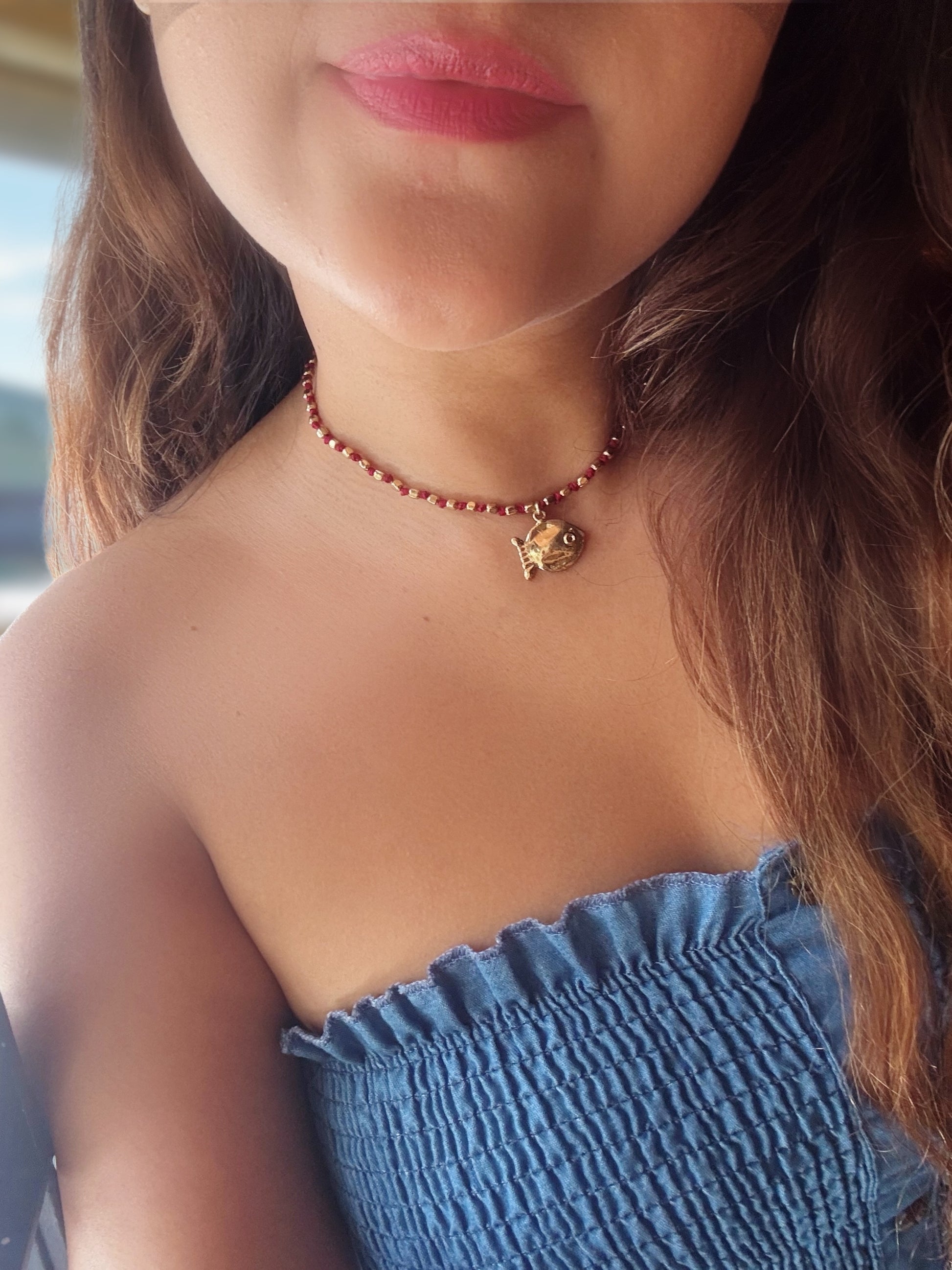 Your favourite vacation accessory is here. A whole personality - this adds flair to the most basics of vacay fits. Quickly throw this fish pendant beaded necklace on with denim shorts and a tee and you’ll be the most effortless ‘it’ girl, we promise!