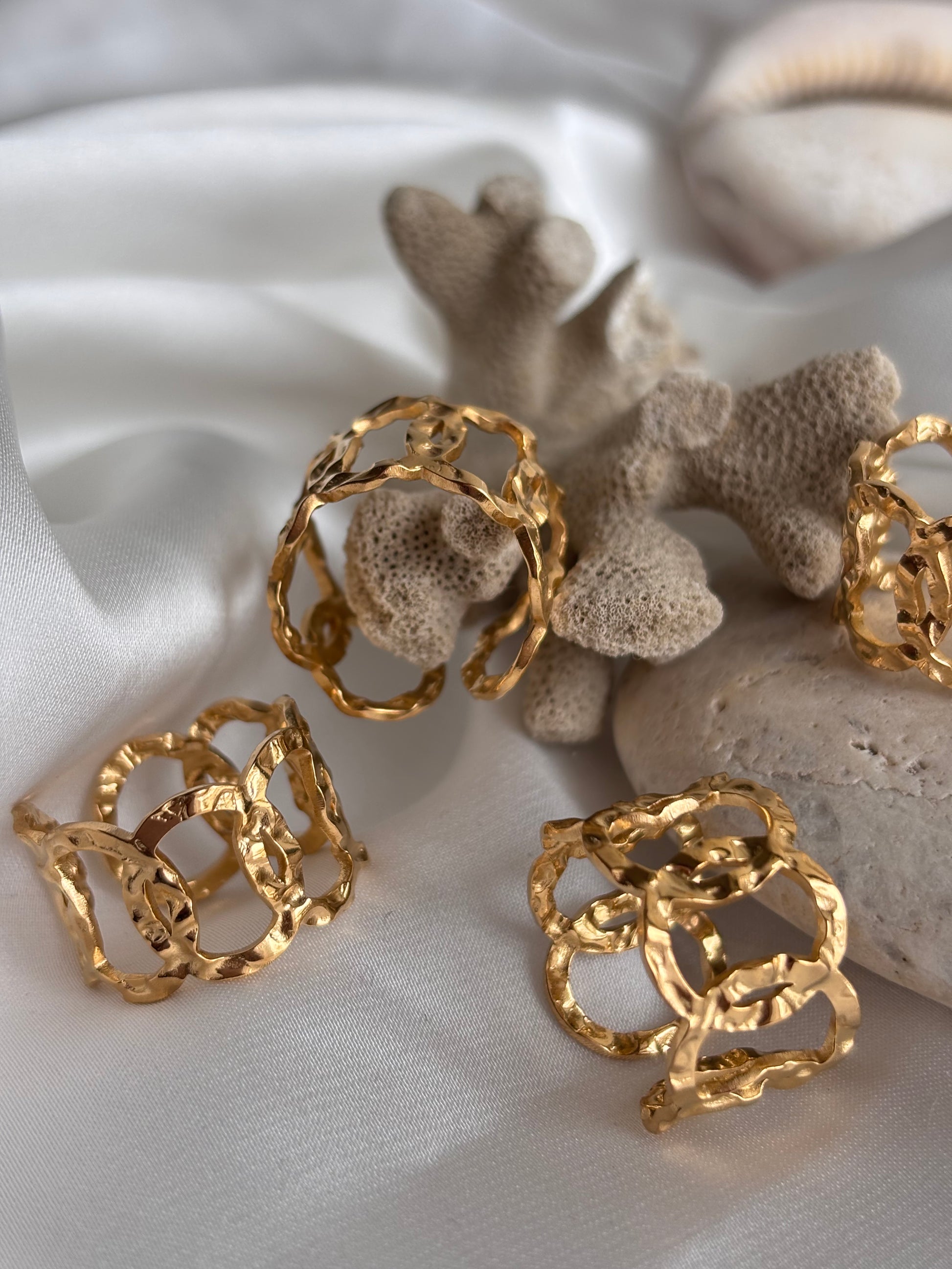 Spice up your everyday style with these adjustable rings featuring a circular link design for a flattering touch. The handcrafted finish lends a unique character to the ring. These are a must-have for any trendsetter looking to add a little edge to their wardrobe.