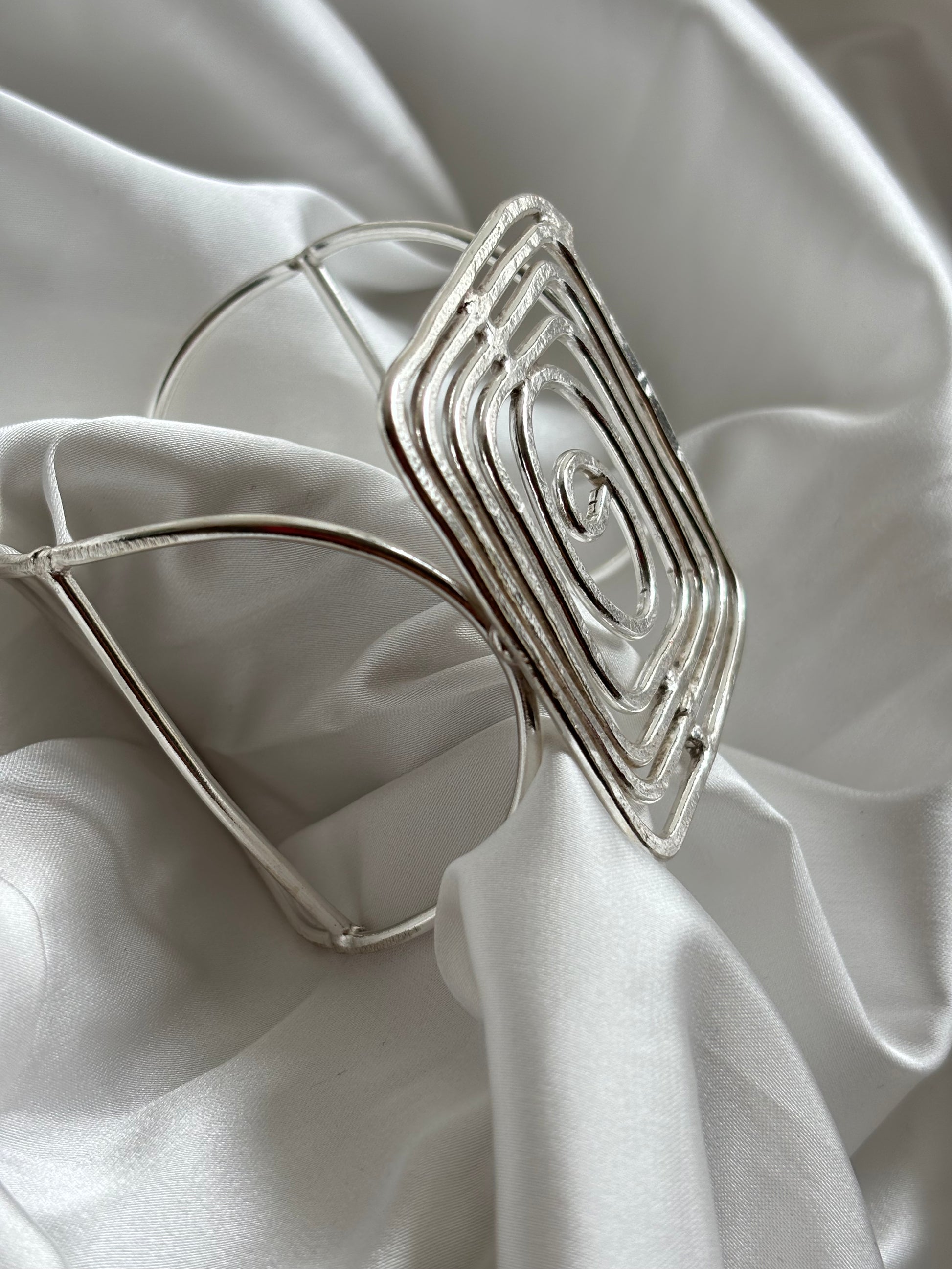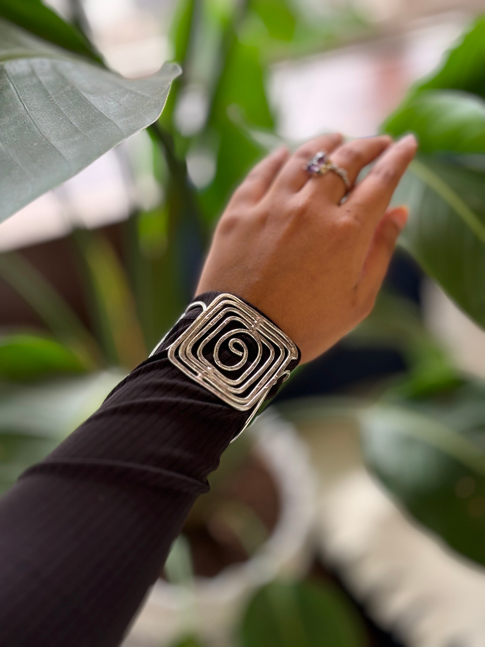 This silver cuff fits like a glove! It can be adjusted to any wrist size as it sits snug your wrist - so perfect for adding the right finishing touch to your outfits. Elegant and chic - this one has something artsy about it. Wear it on one wrist or both!
