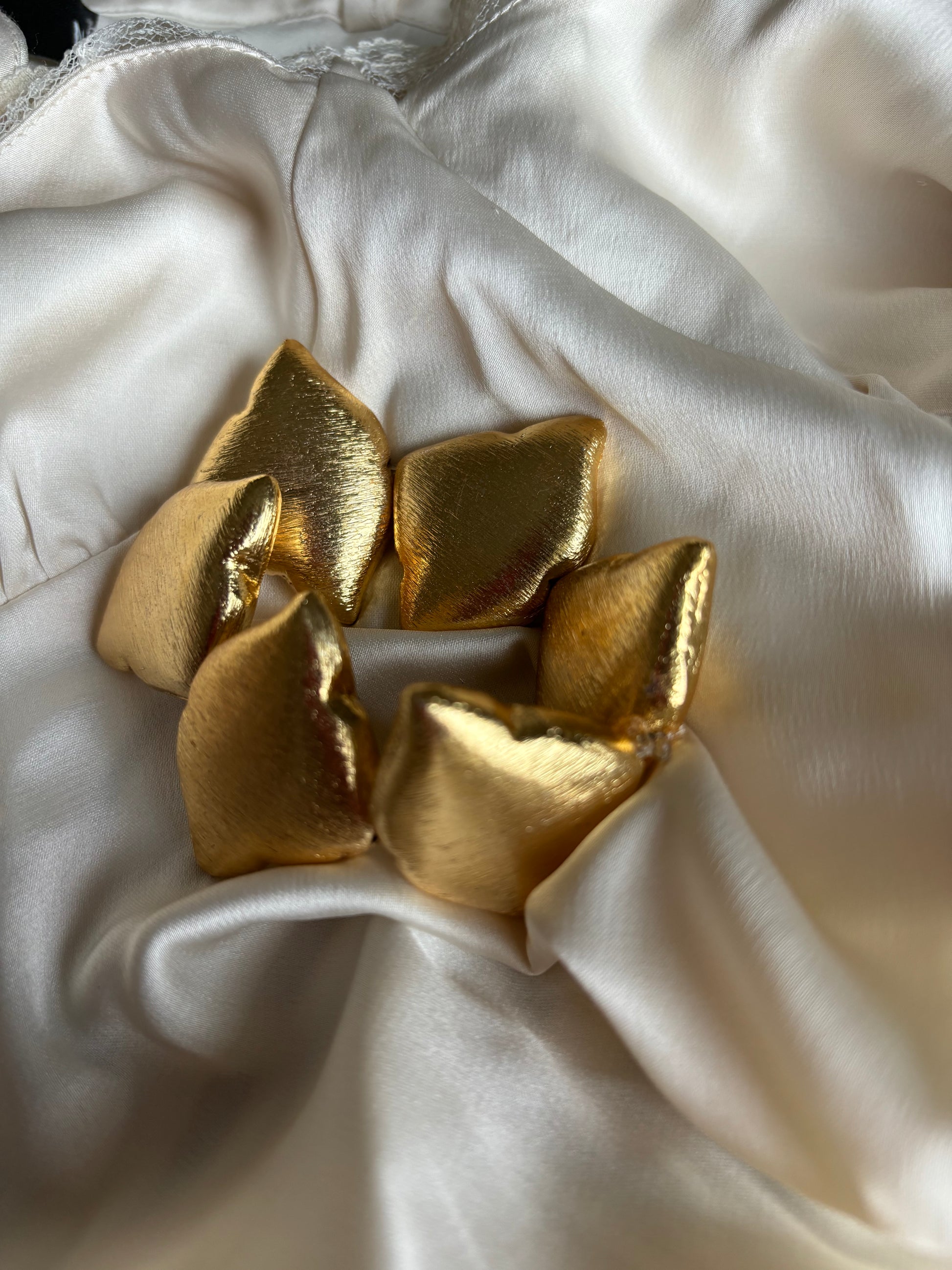 These are elasticated and stretchable, and can be stacked as shown. Handcrafted in brass. 💚✨