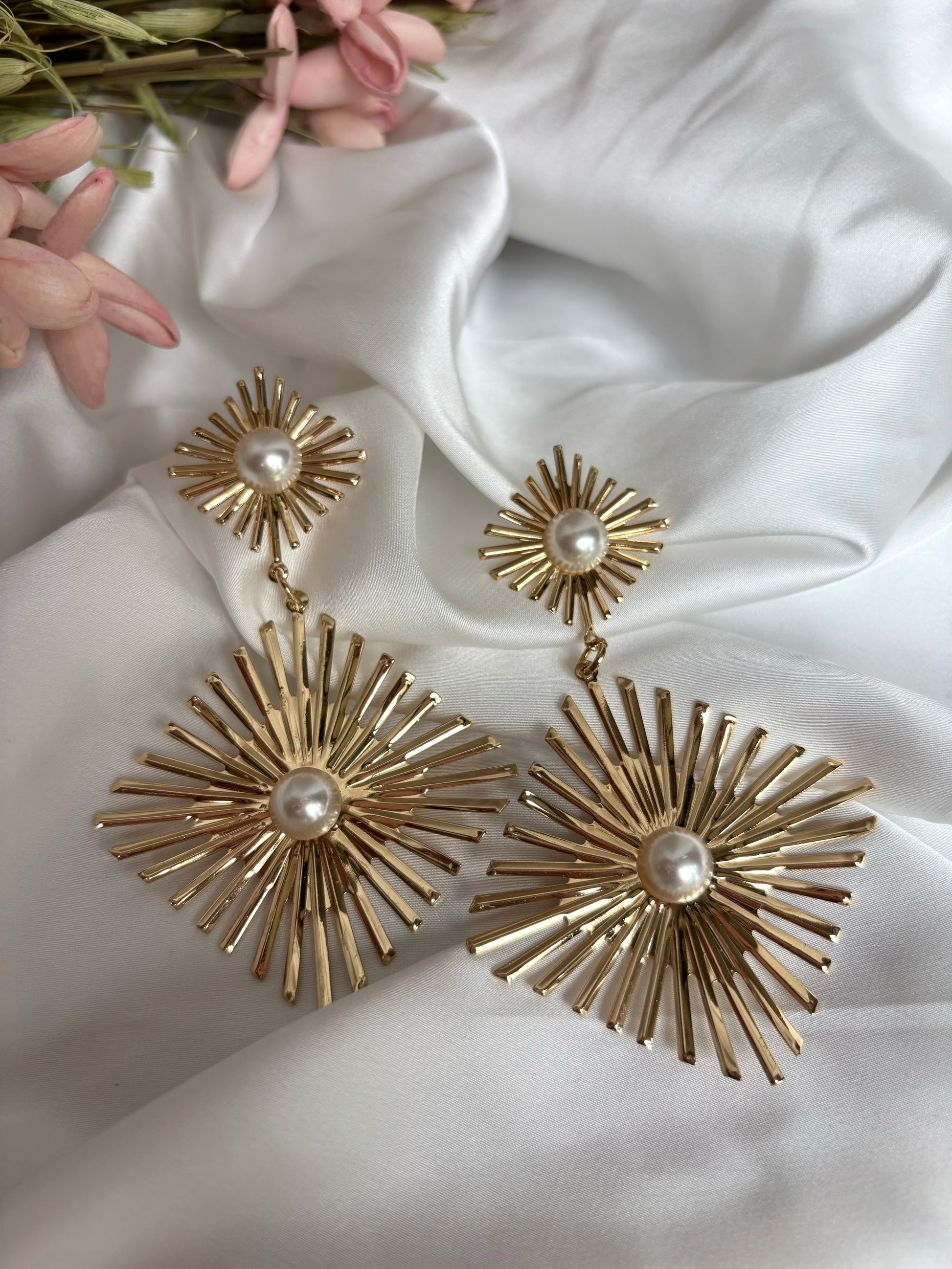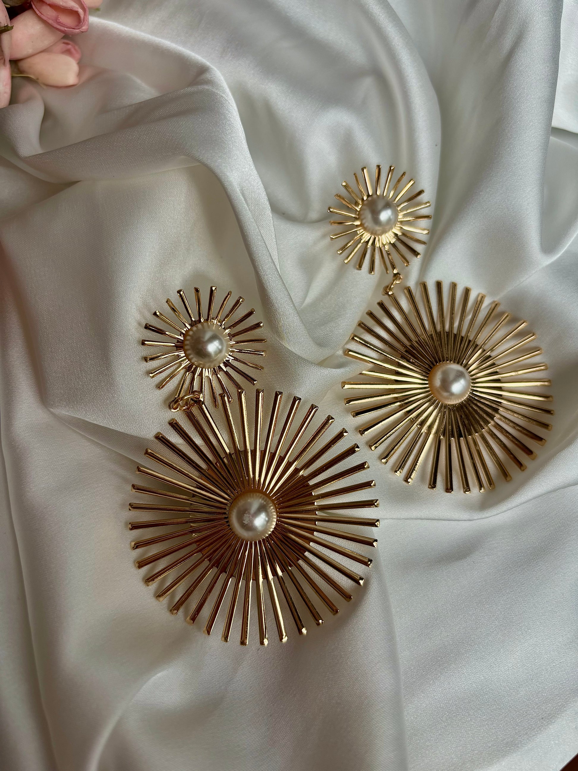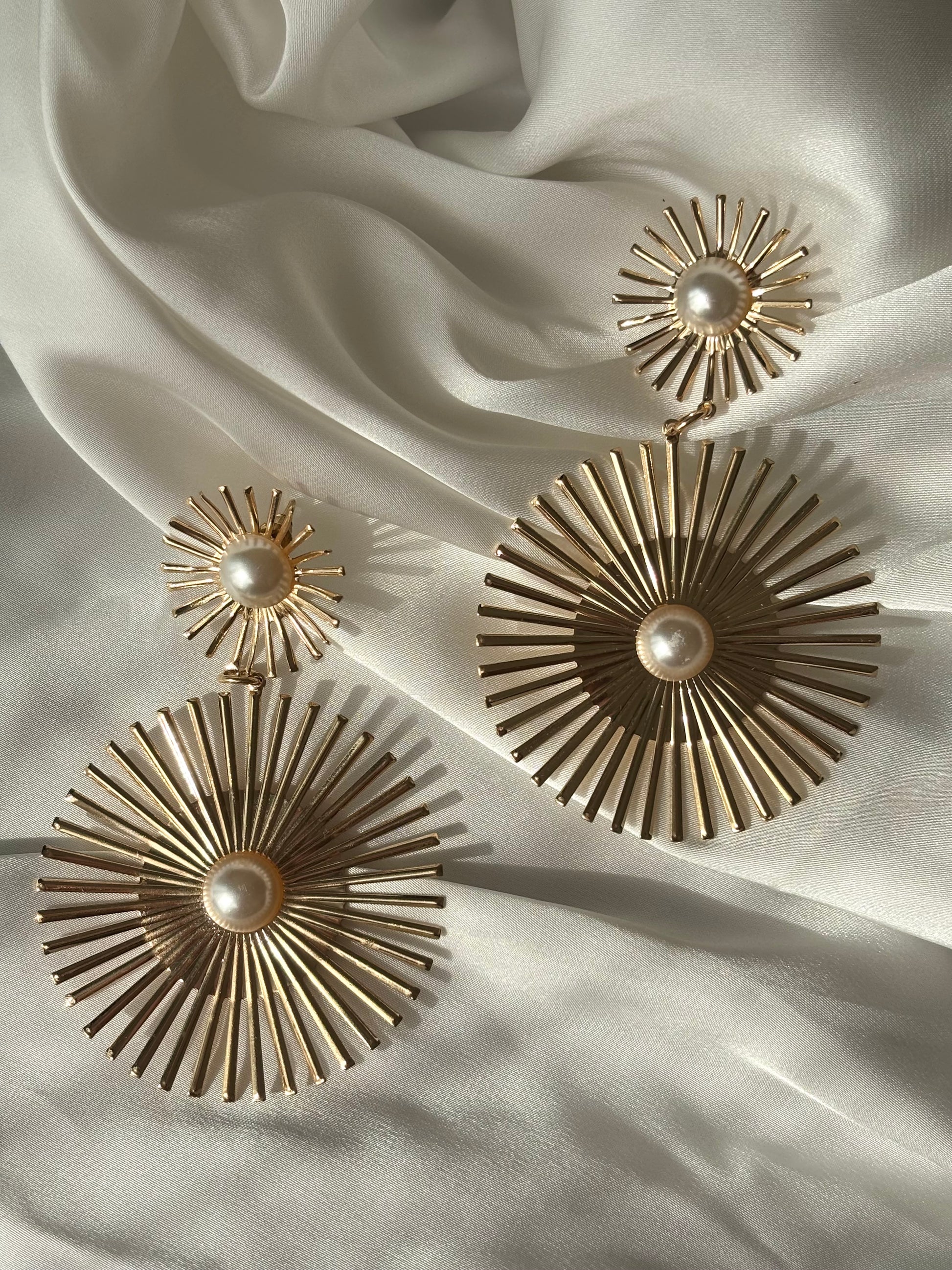 Step into the spotlight in your Pearl Rays earrings – an enchanting fusion of ancient Egyptian motifs and modern glamor. Inspired by the sun's radiant rays, lustrous pearls are delicately set amidst golden beams, illuminating your natural beauty with every wear. Crafted to perfection, these earrings are the epitome of elegance and sophistication.
