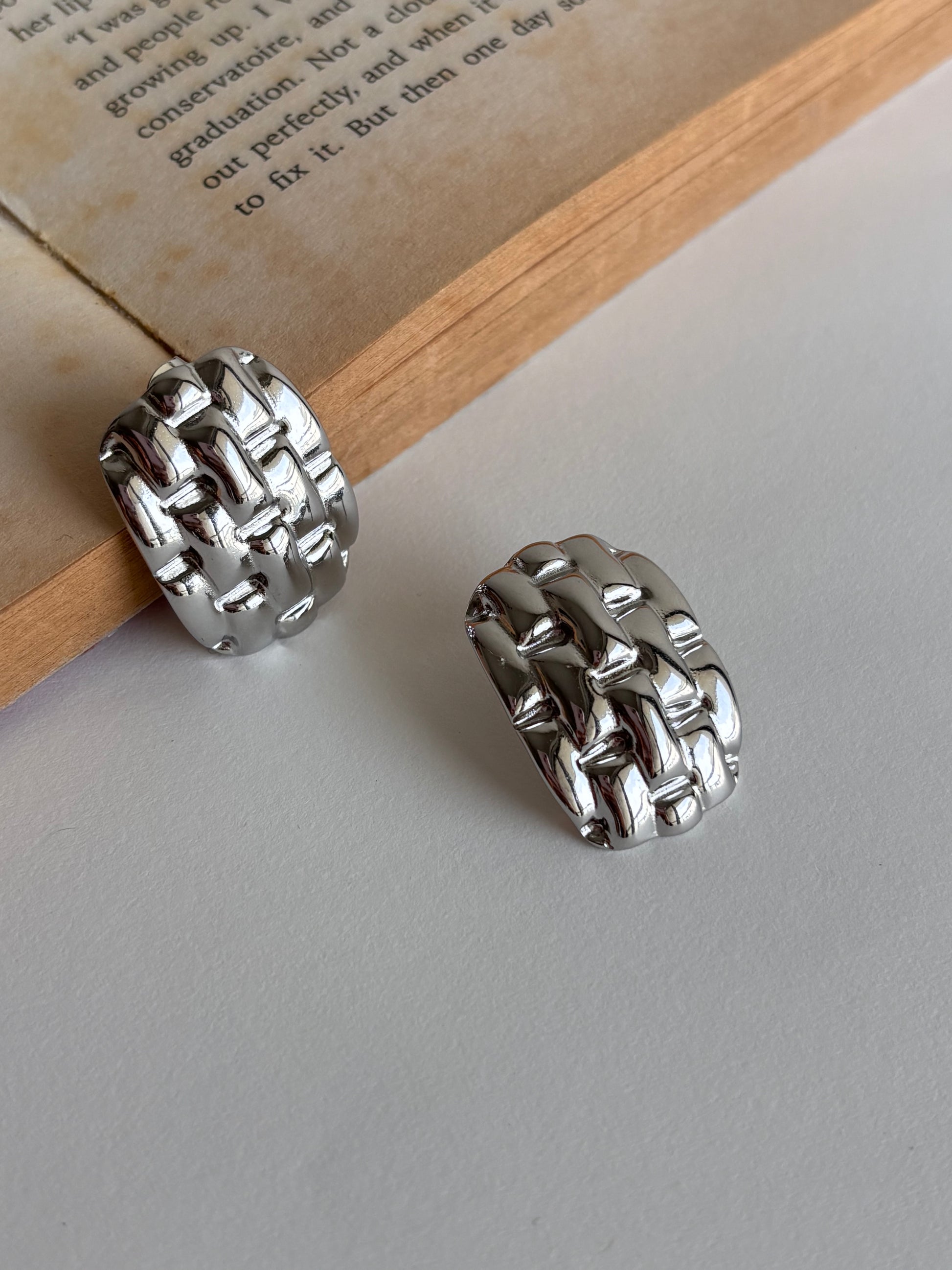 Made in stainless steel, these silver earrings are chic and edgy. Small enough to be worn everyday, but big in style to turn heads. These silver earrings are waterproof, sweat proof, lightweight and long lasting.