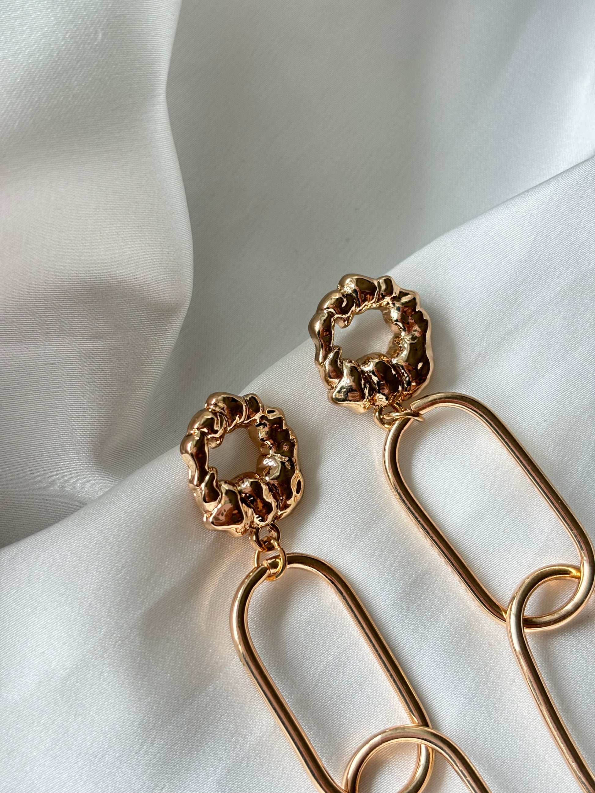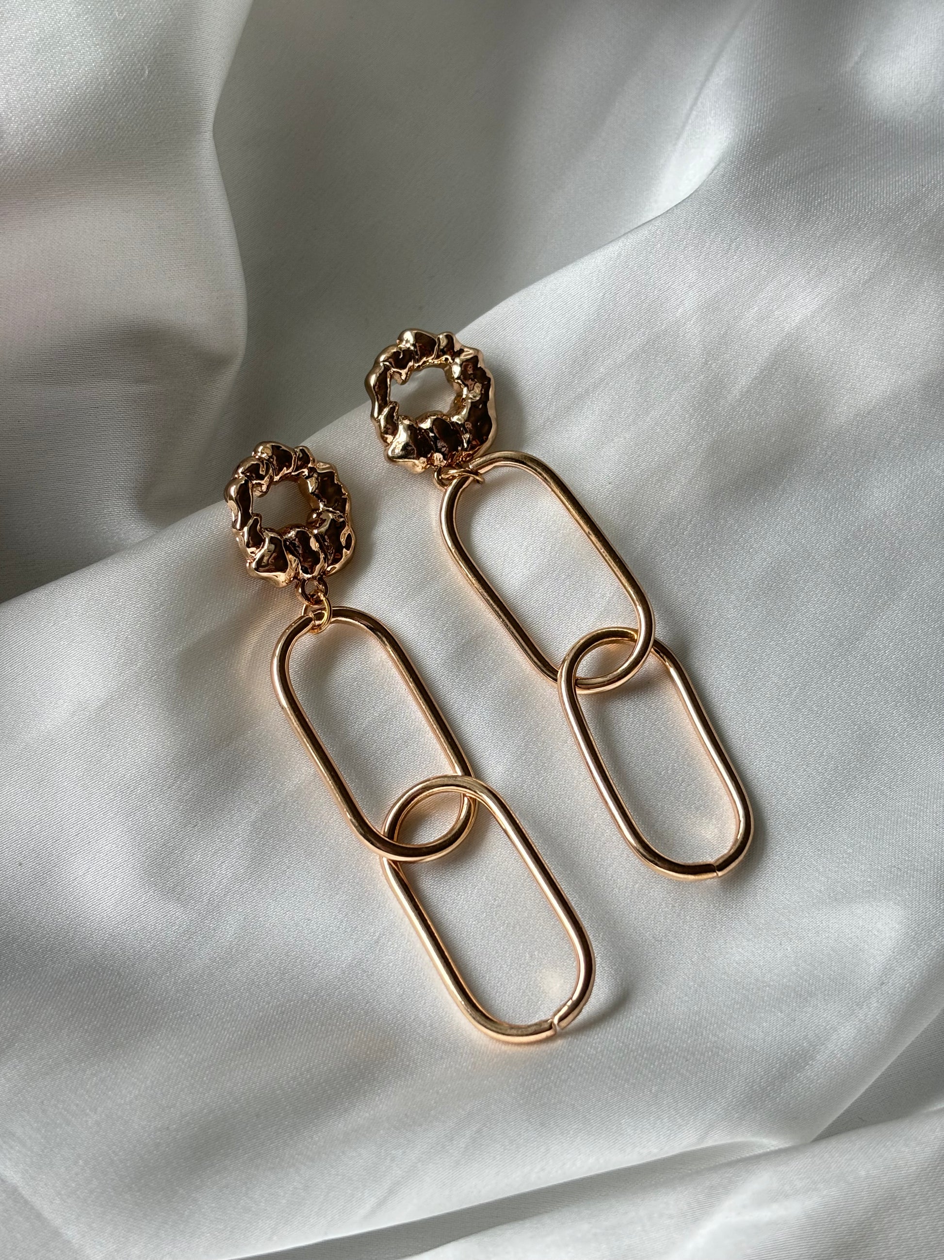 These beautiful dangling earrings have a very stylish link design with a molten covering on top. It’s lightweight and perfect for date nights ✨