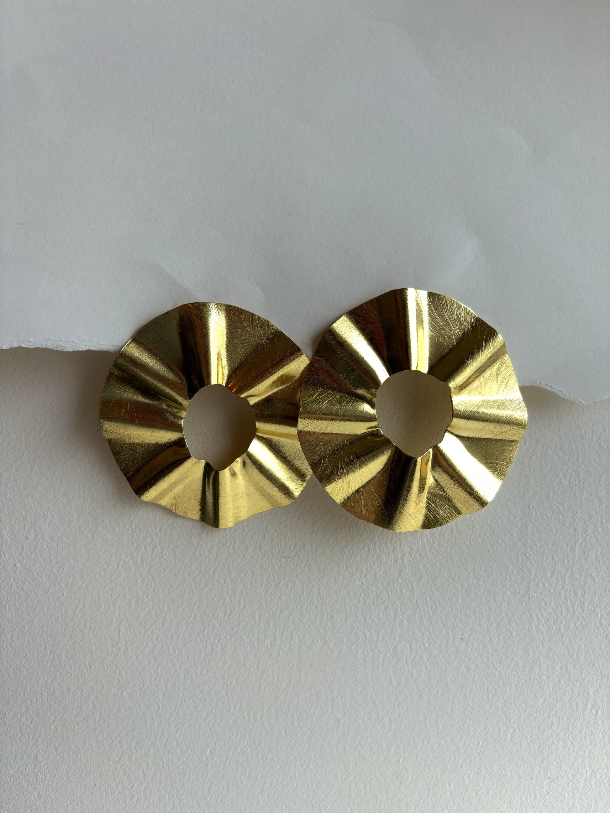 These earrings and inspired from the wild flowers that grow in deep forests of Amazon, big and beautiful, they grow without any tending, and without a care in the world. Just like you, our Glam Gangster- a wild child that adorn themselves with these wild flowers, gilded in gold.